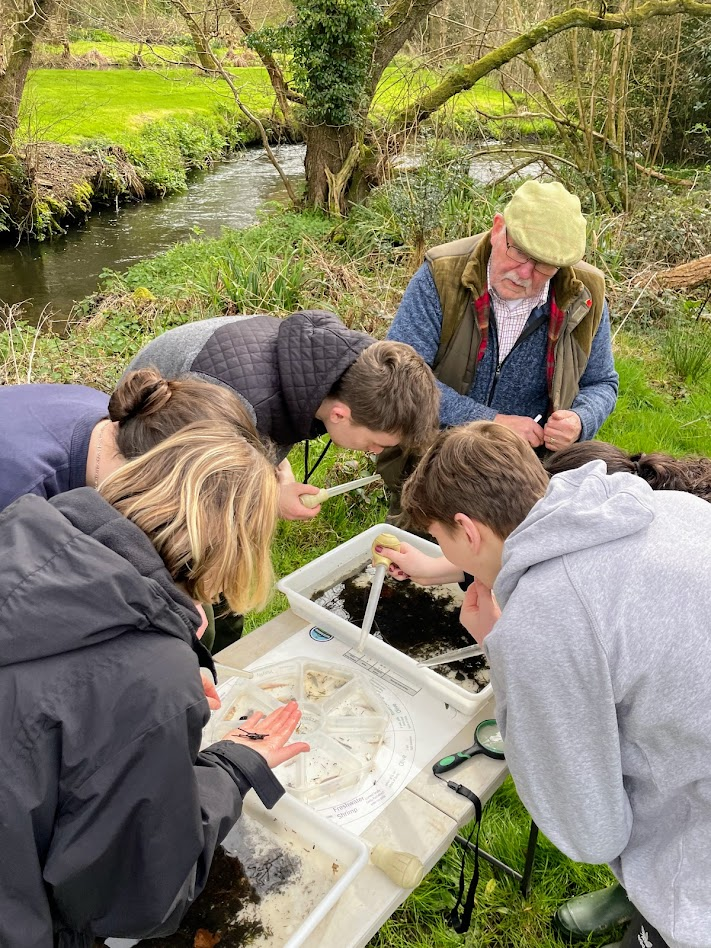 I met with Jo from ROAR Outdoors to collect an E. coli sample to be processed in the lab. Students participating in kick sampling in Allee’s Meadow in Liphook. Volunteers kick sampling and exploring the river’s invertebrate life, discovering what these tiny creatures reveal about water quality.